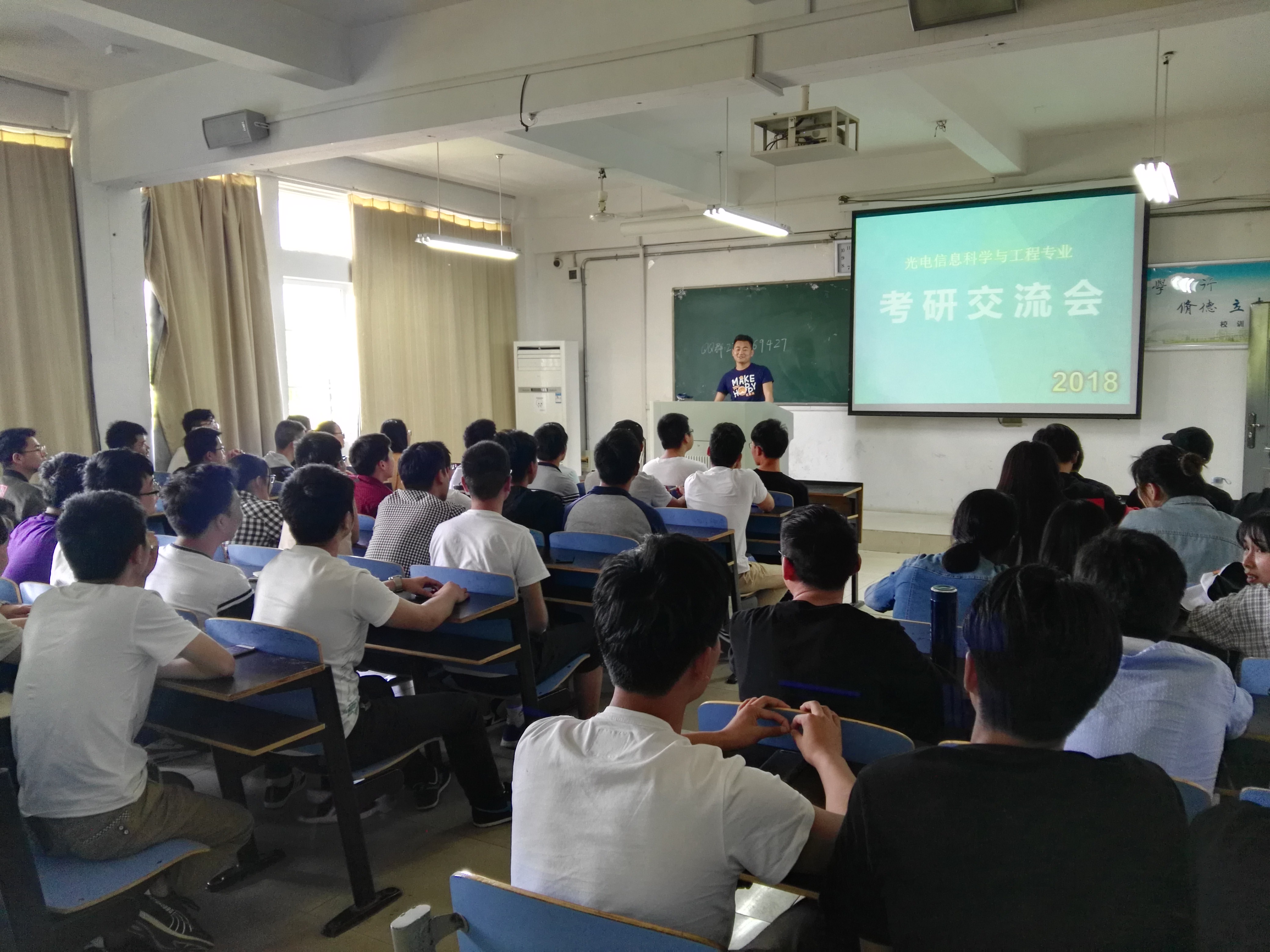 为了进一步提高学生的考研热情,帮助学生明确考研目标,掌握考研技巧,了解更多考研信息,理学院在深入调研学生考研需求后,于5月16日下午针对光电信息科学与工程专业开展了“考研路上 你我同行”为主题的考研交流会。辅导员周晶晶主持了本次活动,理学院光电专业学生积极参加了本次活动。