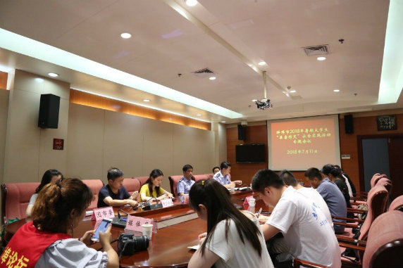 7月11日下午,2018年暑期大学生“禁毒防艾”社会实践活动专题会议在蚌埠市公安局第二会议室召开,我院团委和部分大学生志愿者代表参加了会议。会上,蚌埠市禁毒办专职副主任高建标强调此次活动要结合学习贯彻习近平总书记关于“禁毒工作要从青少年抓起,从广大人民群众教育和防范抓起,让广大人民群众积极追求健康文明的生活方式”的重要指示批示精神,确保该项活动更加切合实际、调研形式更加活泼多样、调研内容更加精准丰富。