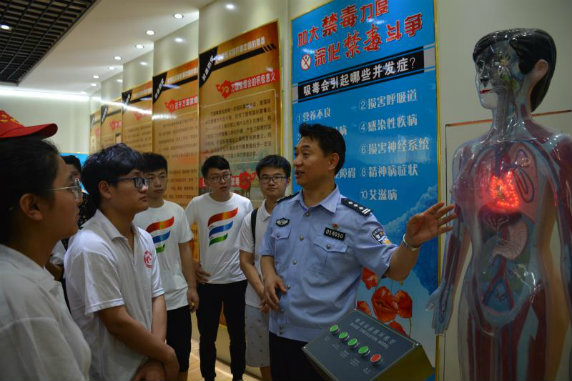 7月12日上午,在市禁毒办的组织下,我院大学生志愿者来到了蚌埠市疾控中心,认真聆听了艾防科专家的讲座。当日下午,我院大学生志愿者又来到了蚌埠强制隔离戒毒所进行参观学习,并开展座谈交流。大学生志愿者在该所治疗康复中心亲身体验磁场刺激测试仪、参观劳动康复中心、体能训练中心、教育疏导中心、生活起居中心等。