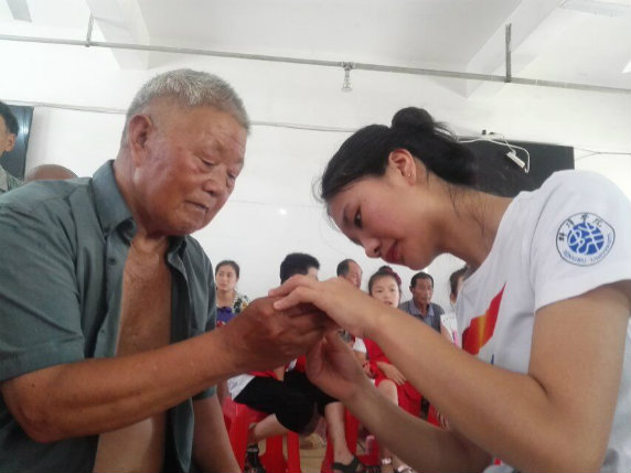 志愿者们与老人们交谈,询问老人的日常生活状况及身体健康状况。老人表示,清晨或傍晚,和院里的老人们一起散散步,锻炼锻炼身体。下午,与其他老人玩些纸牌、棋牌等小游戏。三餐温饱,身体健康。当谈及家人时,老人有些许的沉默,志愿者们便与老人交谈身边的趣事,以此抚慰老人。志愿者看见老人的指甲需要修剪,主动拿起指甲钳,拾起老人的手指,仔细地修剪着。一支支,一点点,一下下,志愿者和老人沉浸在温暖中。