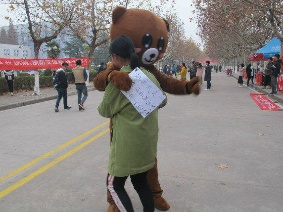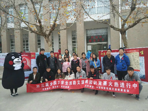此次活动的前期,理学院团总支已利用传统媒介和新兴新媒体等形式开展形式多样的宣传活动,有线上的答题竞赛和线下的主题讲座。活动现场,以主动检测,知艾防艾,共享健康为主题,青年志愿者拉上手牵手,共牵红丝带,心连心,共防艾滋病和第三届全国大学生预防艾滋病竞赛的横幅,佩戴着象征对艾滋病患者给予关心与支持的红丝带,迎接学生的到来。志愿者们精心准备题目抽取箱和奖品箱,通过抽取相关题目,答对有奖的方式吸引了很多学生。其中一等奖是玩偶,二等奖是避孕套,三等奖是进群领取的现金红包,这不仅增加学生对活动的关注,也加大了活动的宣传力度。在活动中,有志愿者穿上玩偶服拿着写有假如我是艾滋病人,你可以给我一个拥抱吗?的牌子请求路人给予一个爱的抱抱,一次次拥抱也向我们传递着艾滋病患者对尊重和关爱的渴望以及平等对待艾滋病人、给予尊重与支持的理念。志愿者们也热心给学生讲解防艾事项,向学生介绍宣传板上的线下防艾答题比赛,更有学生在签名册上留下自己的名字。活动末尾,志愿者们组成领跑的爱心接力和绘制的红丝带图案造型也为本次活动画上圆满的句号。