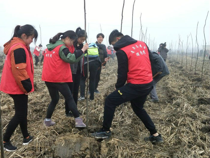 新一年的植树节又悄然而至,为了增强大学生珍惜绿色的责任心,,积极践行高校学子环保理念、展现当代高校大学生的环保意识和主人公意识,3月10日上午,理学院组织青年学生奔赴固镇县曹老集镇开展植树活动。