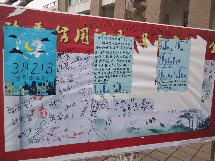 3月21日是世界睡眠日,为了宣传和普及健康睡眠知识,3月23日,理学院团总支在校园主干道开展了宣传世界睡眠日活动。