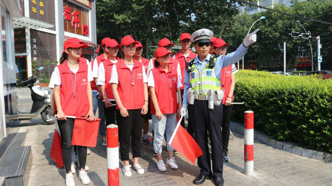 7月6日至8日,团队来到交警大队分支队“吴忠好交通服务工作站”进行交通疏导学习与实践。首先由吴队长给志愿者们详细讲解如何利用红旗与口哨指挥行人、机动车、与非机动车安全通过红绿灯。并通过吴队长的介绍,我们了解到近年来的交通安全治理越来越好,人们遵守交通规则的意识日益提高。随后团队志愿者在红绿灯的四个路口站岗协助交通警察维护交通安全。各志愿者认真实践,严格守好了自己的岗位,并耐心地劝诫闯红灯的市民并对其讲解不遵守交通规则的危害及交通知识,劝导行人遵守交通规则,取得了较好的效果,得到交警同志的大力支持与表扬,同时亦得到市民的一致好评。