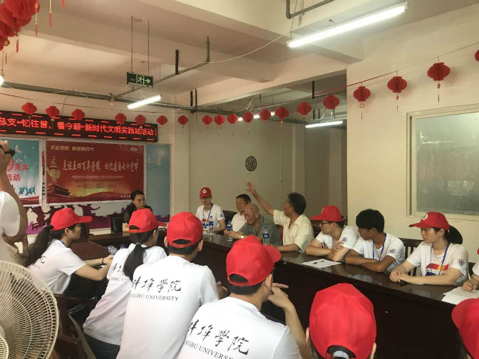 7月5日迎着清晨,志愿者们前往兴光尚庭社区,同老人们交流探讨历史的变化与成就。五位退伍老人与志愿者们围坐一圈,共同探讨历史成就。老人们激情澎湃地讲述自己经历的历史,或是建国后的艰苦奋斗,或是为抗美援朝战争空中作战默默付出的后勤工作,或是抗日战争中的激烈斗争,或是缅怀牺牲的烈士英雄。志愿者也拿出自己准备的历史照片,和老人交流。通过与老人的探讨,志愿者充分感受的历史的变化之快以及自己肩负的责任之重。最后老人也对青年学生予以劝诫和激励,百岁老人潘玉太说:“党是伟大的、正确的、光荣的,要听党指挥,一步一个脚印,不忘初心,继续前行。要刻苦学习,刻苦钻研,为国家建设添砖加瓦。”