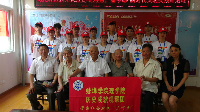 为纪念五四运动100周年和新中国成立70周年,激发青年学生的爱国思想,传承五四爱国文化,增强青年学生的责任感和使命感,理学院组织青年志愿者于7月4日至7月7日分别前往兴光尚庭社区、蚌埠市博物馆、蚌埠市城乡规划展览馆以及大唐公园开展以“见证五四百年荣耀,回忆建国七十光辉”为主题的系列暑期社会实践活动。
