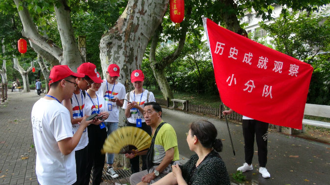 7月7日-8日,志愿者们在大唐公园和发起了关于五四运动和新中国成立相关的问卷调查。志愿者纷纷采访公园游客,提问相关问题,并对游客的答案进行补充解释,大力弘扬五四精神和爱国主义精神。对于完成问卷的游客,志愿者还举行抽奖活动给予鼓励与感谢。活动吸引了越来越多的游客,更有阅历丰富的老人给志愿者讲解,志愿者们受益匪浅。一位老人语重心长地说:“五四精神和爱国精神不能也不会被遗忘,需要更多的人更多的力量来宣传,来弘扬。”