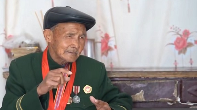 李前宝、1929年出生、合肥人,1951年瞒亲赴朝,系志愿军第50军148师442团机枪手,刺刀别手榴弹炸坦克,大树单枪挡敌群,四年两度立功,归国深藏功名,如今96岁仍行军礼。