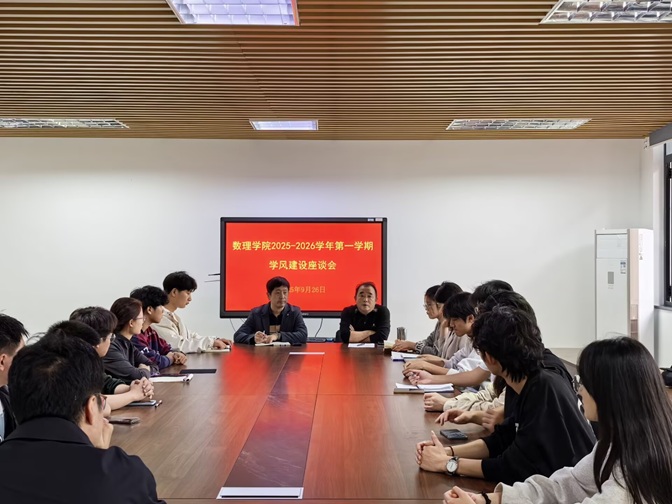为持续加强学风建设,营造良好学习氛围,9月26日中午,数理学院在理工楼南楼501会议室召开2025-2026学年第一学期学风建设座谈会。学院党委书记孙礼俊、党委副书记李明出席会议,各年级辅导员、各班班长及团支书参加会议。会议由李明主持。