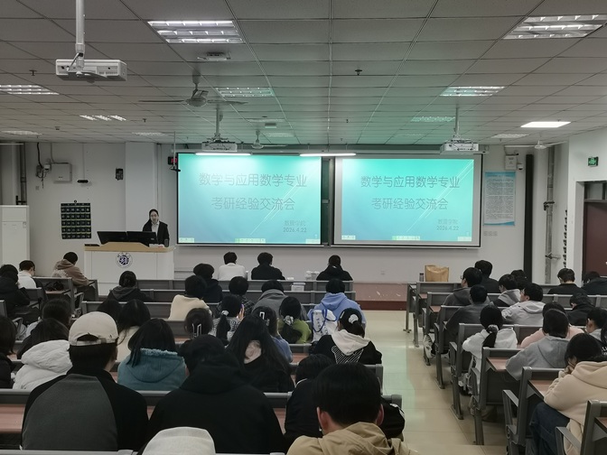4月22日下午,数理学院在G205教室举办数学与应用数学专业考研经验交流会。交流会特邀四位成功上岸的2022级优秀学子——哈苏恬心、马二康、马仁昊、吴宇豪分享备考心得,为2023级和2024级百余名同学答疑解惑、树立榜样。