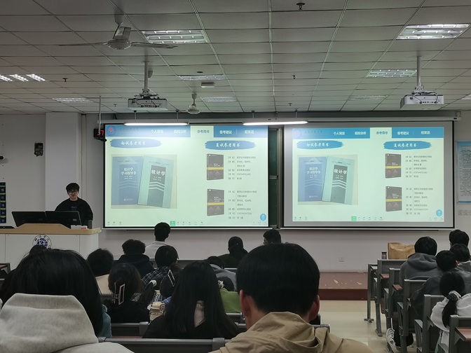 会上,四位学长学姐结合自身备考经历与目标院校报考特点,围绕考研院校选择、公共课与专业课复习规划、备考时间分配、刷题技巧、真题运用、心态调节、复试准备等核心内容进行细致讲解。他们结合应用数学专业学习特点,梳理学科重难点,推荐优质学习资料,剖析考研过程中的常见误区,分享了备考路上的坚守与感悟。其中,马二康同学准备了内容丰富、详实直观的PPT,系统罗列了他的全部考研数据和资料,为同学们提供了极具参考价值的备考经验;马仁昊同学则分享了自己从日语转战英语、“零基础”备战四六级直至考研英语的逆袭历程,以亲身经历鼓励同学们坚定信念、树立信心。“考研没有捷径,每一份收获都藏在日复一日的坚持里,那些熬过的夜、刷过的题,终会化作照亮前路的光。”学长学姐们的励志话语引发在场同学的强烈共鸣。
