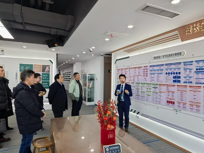 走访过程中,韦文联一行深入企业技术研发区、办公区,通过听取汇报、实地观摩和座谈交流,全面了解企业发展及人才需求。在安徽鼎校教育科技有限公司,重点了解智能教学设备研发、数据处理领域的人才标准;在鲲鹏教育,围绕大数据、人工智能应用等方向,与企业探讨人才培养思路,精准掌握企业用人需求。